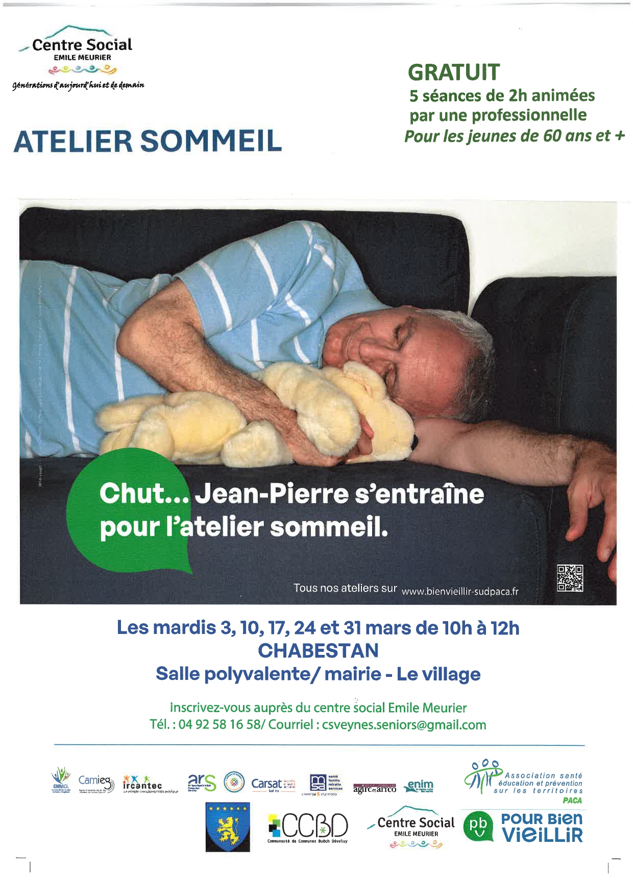 Un atelier « Sommeil » sera organisé prochainement à Chabestan à l’intention des personnes ayant 60 ans et plus.